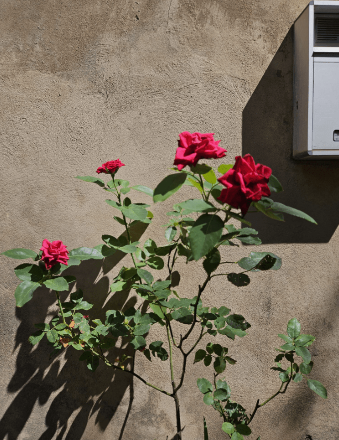 : foto di rose sotto a una cassetta delle lettere a Bolgheri.