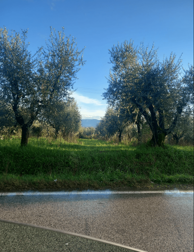 : ma il giorno dopo comunque avrebbe piovuto ancora. Ma per un momento è finito di piovere; e gli olivi son pieni di frutti; e la strada è lucida; e il semaforo è rosso perchè stanno facendo dei lavori ad una scuola e la strada è chiusa per metà, aperta per l’altra; e io sto ascoltando Rossini alla radio; e sono in macchina verso Pistoia.